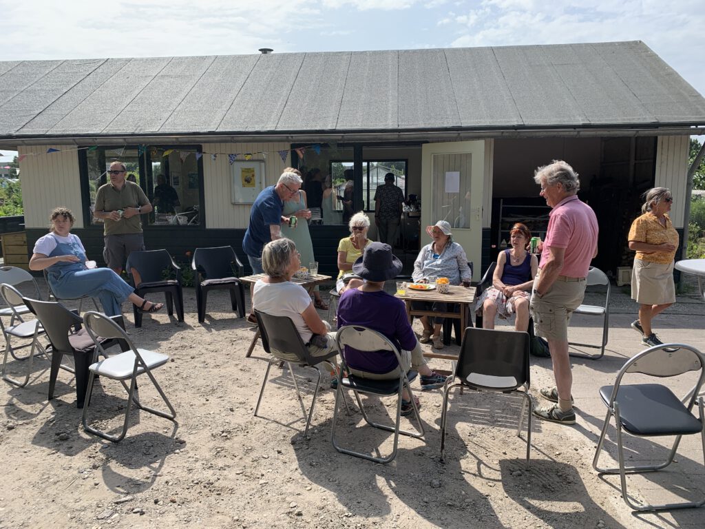 En daarna kon het informele deel van de midzomerviering beginnen. De evenementencommissie had intussen alles gereed gemaakt met drankjes en hapjes. In de warme middagzon bleven de leden nog lang nazitten. Het was weer een bewijs dat OVV niet alleen een vereniging is van tuinliefhebbers, maar ook een groep mensen is die van gezelligheid en sociaal contact houden.